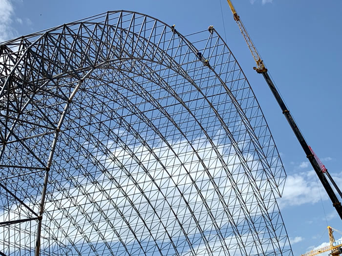 (2)网架加工前应对现场尺寸进行复测,确认无误后方可进行加工、安装;网架制作、运输、安装应遵守《空间网格结构技术规程》JGJ7-2010、《钢网架衡阳螺栓球节点》JG/T 10-2009、《钢网架衡阳螺栓球节点用高强度螺栓》 GB/T 16939-2016、《衡阳钢结构衡阳工程衡阳施工规范》 GB50755-2012、《衡阳钢结构衡阳工程施工质量验收标准》 GB50205-2020。